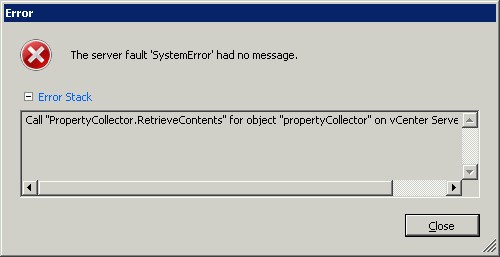 “Call “PropertyCollector.RetrieveContents” for object “propertyCollector” on vCenter Server “VCentreServer” failed.”